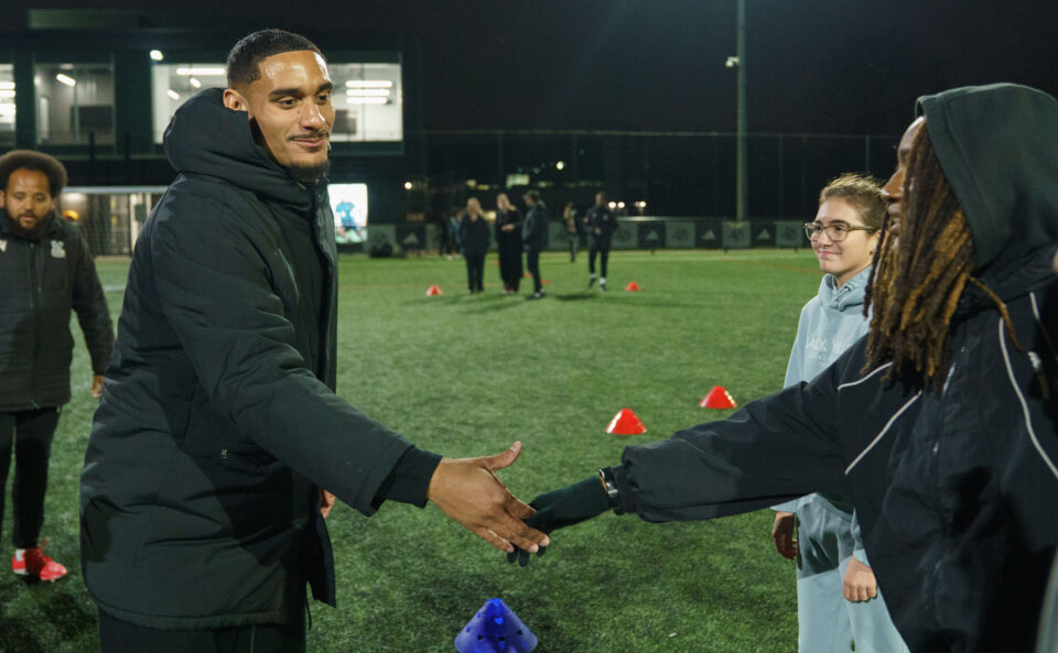 Maxence Lacroix visits a Premier League Kicks session at Merky FC HQ